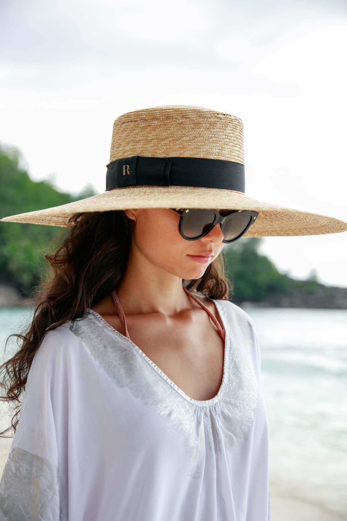 Sombrero Riviere Canotier de Ala Ancha Cinta Negra