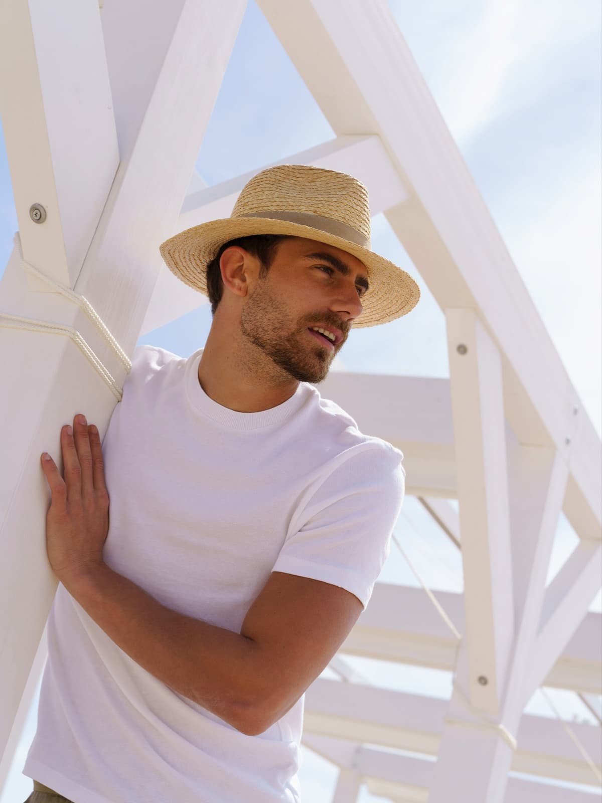 La atención al detalle es lo que hace a nuestro sombrero Fedora Hombre Ala Corta único. La cinta de piel color gris añade un toque de lujo y diferencia, contrastando sutilmente con el color natural de la raffia. Un elemento de diseño atemporal que garantiza que siempre te verás bien y te sentirás especial.