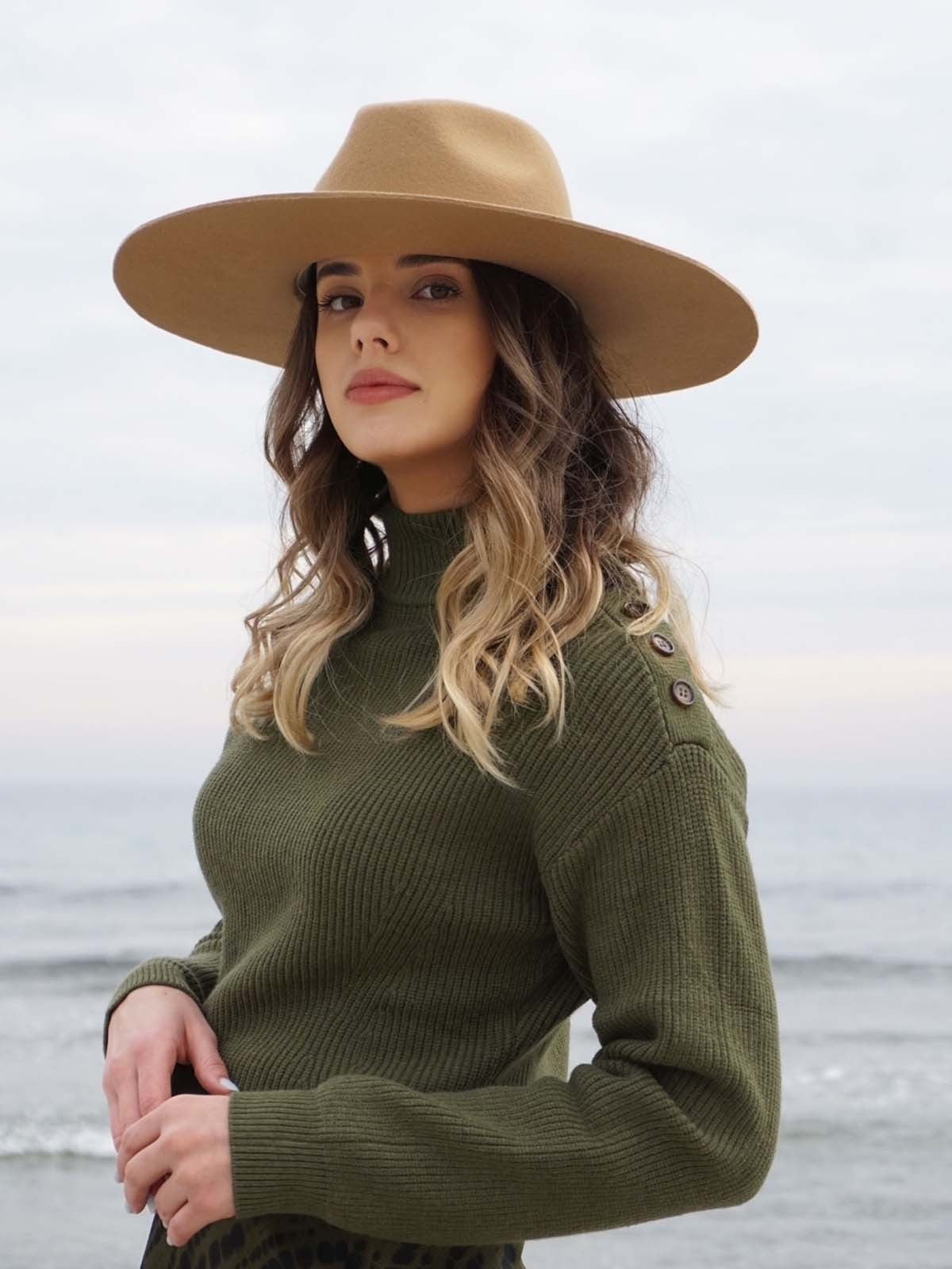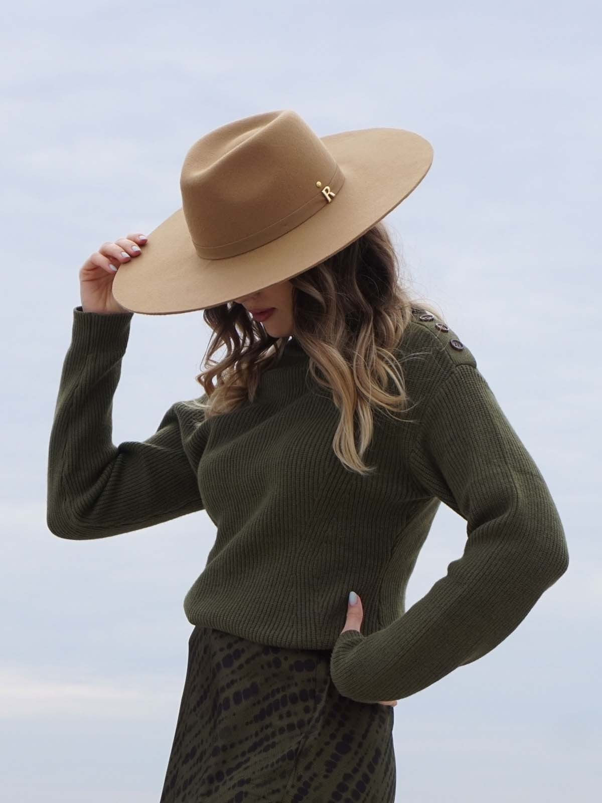 Creado y confeccionado a mano en España, utilizando la más fina lana en un sofisticado color Taupe, su ala ancha y rígida destila confianza y sofisticación.