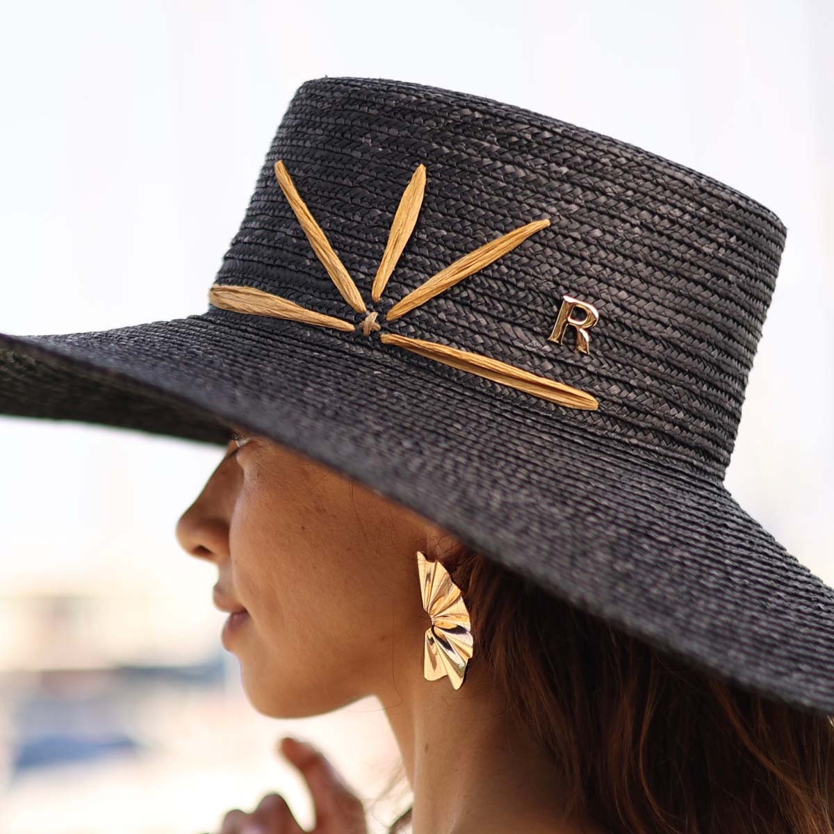 Sombrero Boda Canotier Negro Ala Ancha GOLDIE