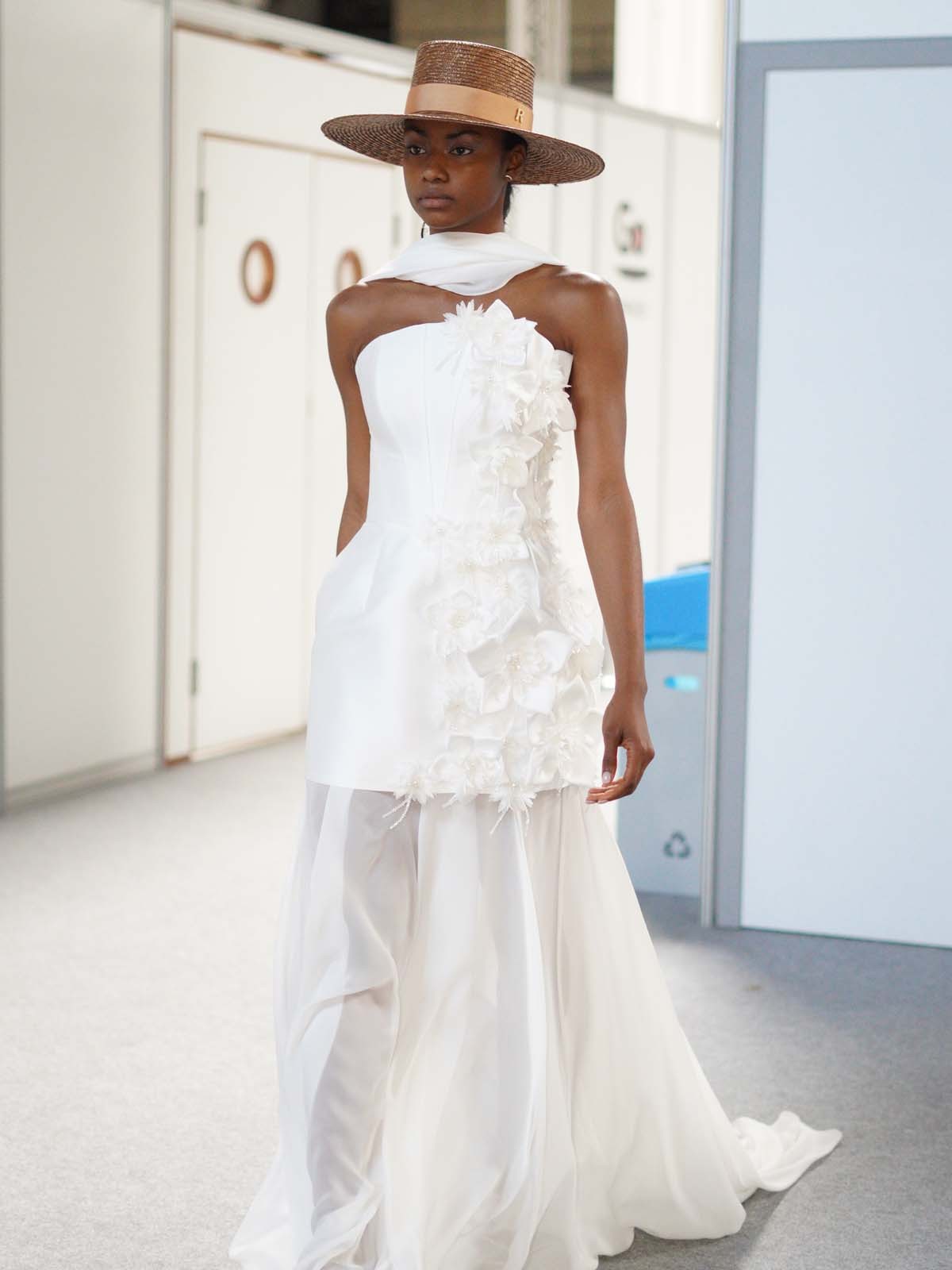Su delicado color marrón, fruto de un esmerado proceso de teñido sobre paja 100% natural, irradia una calidez y una luz únicas, perfectas para la novia que busca distinción y un toque de romanticismo atemporal.