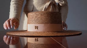Confeccionado artesanalmente en España, cada sombrero es un testimonio de la maestría y la pasión por los detalles. La elegante cinta de grosgrain que ciñe la copa aporta un contraste sutil y refinado, mientras que el distintivo pin R sella su autenticidad y exclusividad.