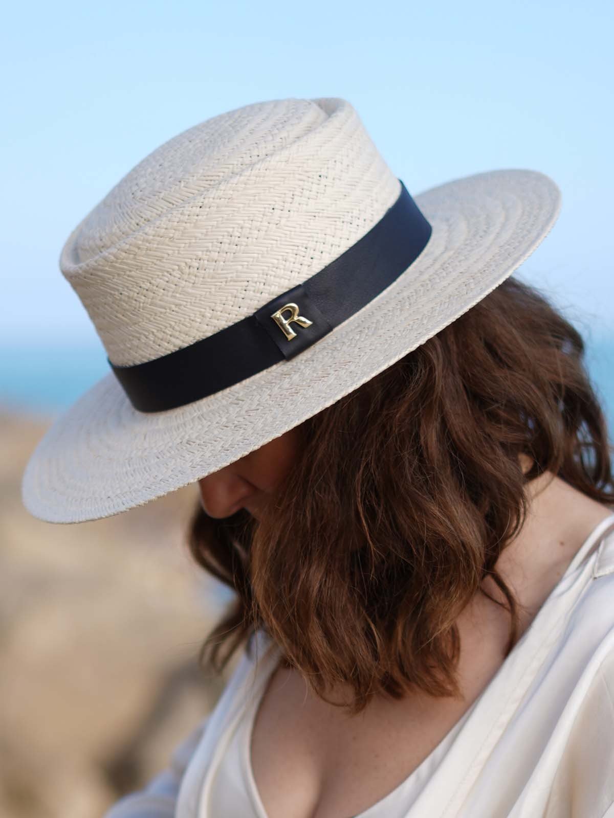 La estructura mantiene su forma con gracia, sin sacrificar ni un ápice de confort. El color blanco puro evoca la luminosidad del verano mediterráneo, y el delicado detalle de la cinta de piel con nuestra distintiva "R" añade un toque de sofisticación exclusiva.