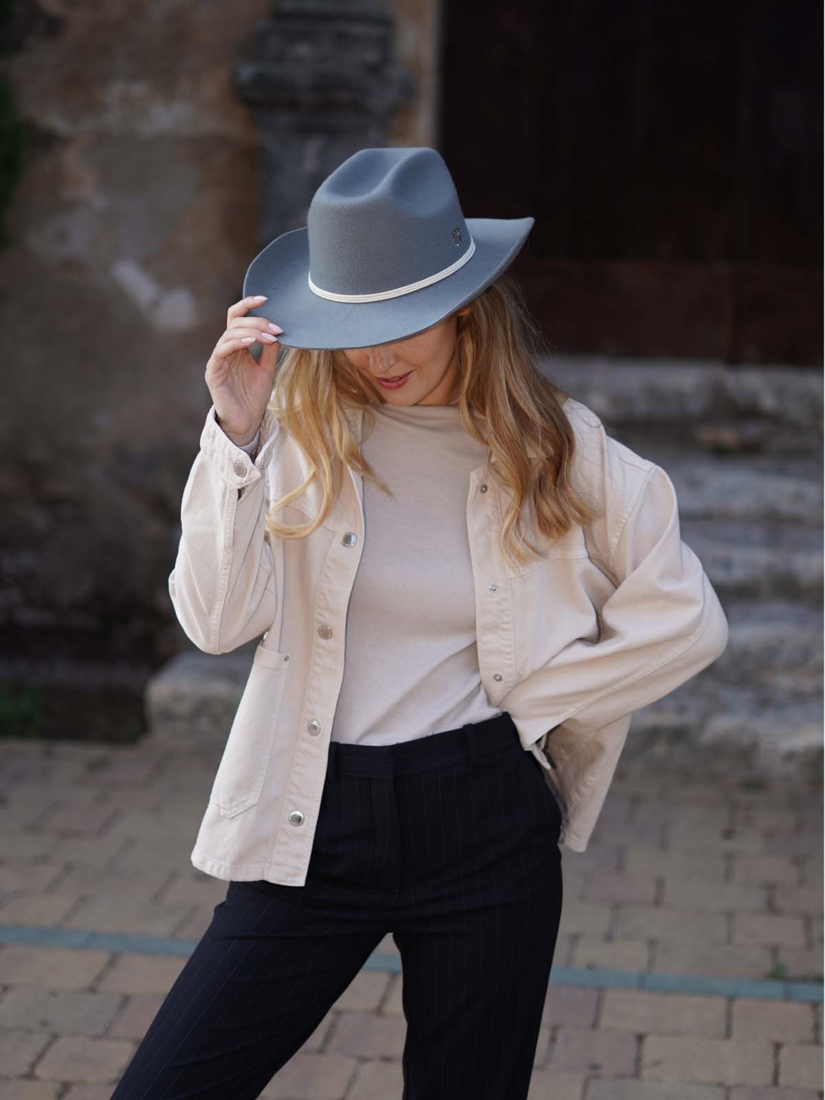 En Raceu Hats, creamos sombreros que trascienden las estaciones. Te presentamos nuestro Sombrero Cowboy Mujer Gris KANSAS, una pieza única para la mujer moderna que busca estilo y calidez.