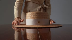 Déjate seducir por la elegancia atemporal de nuestro Sombrero Canotier Ala Ancha Champagne LIRIA. Una pieza única, fabricada artesanalmente en España, que captura la esencia del estilo de vida mediterráneo.