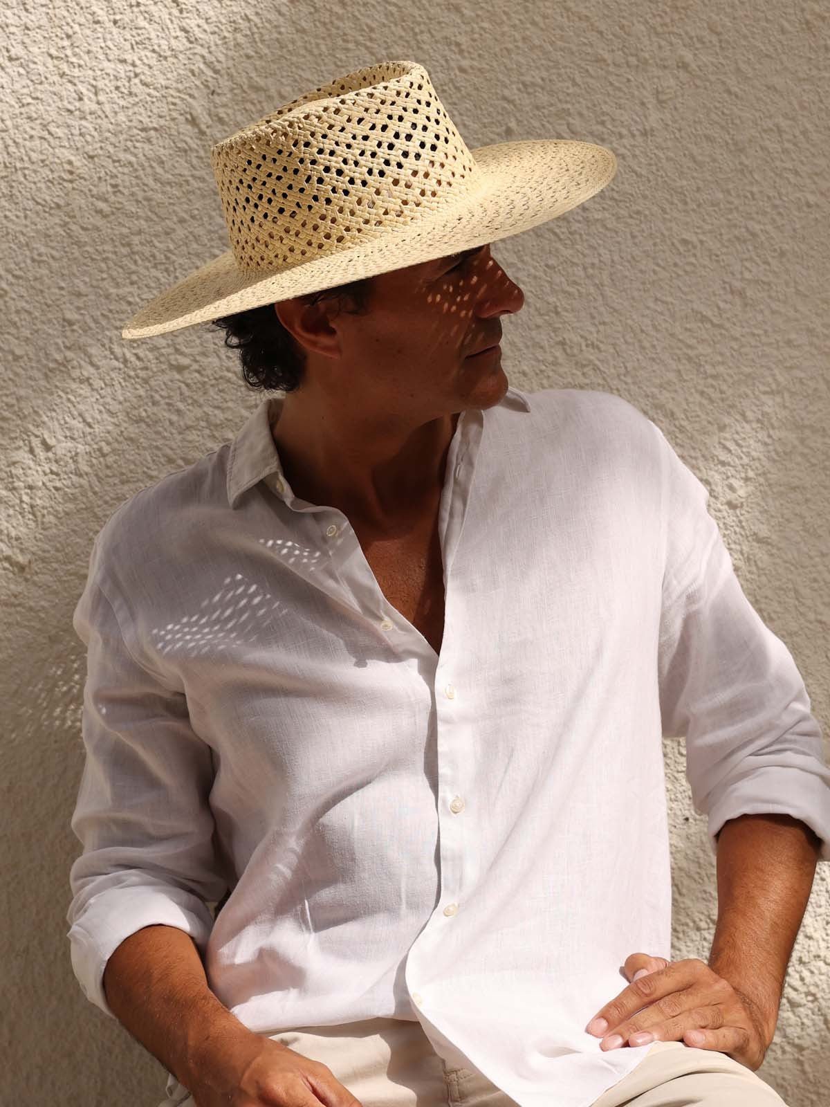 Confeccionado con 100% paja de toquilla, cada sombrero es una verdadera obra de arte hecha a mano. Las fibras naturales, cuidadosamente seleccionadas y tejidas en Ecuador, garantizan una durabilidad y flexibilidad incomparables.
