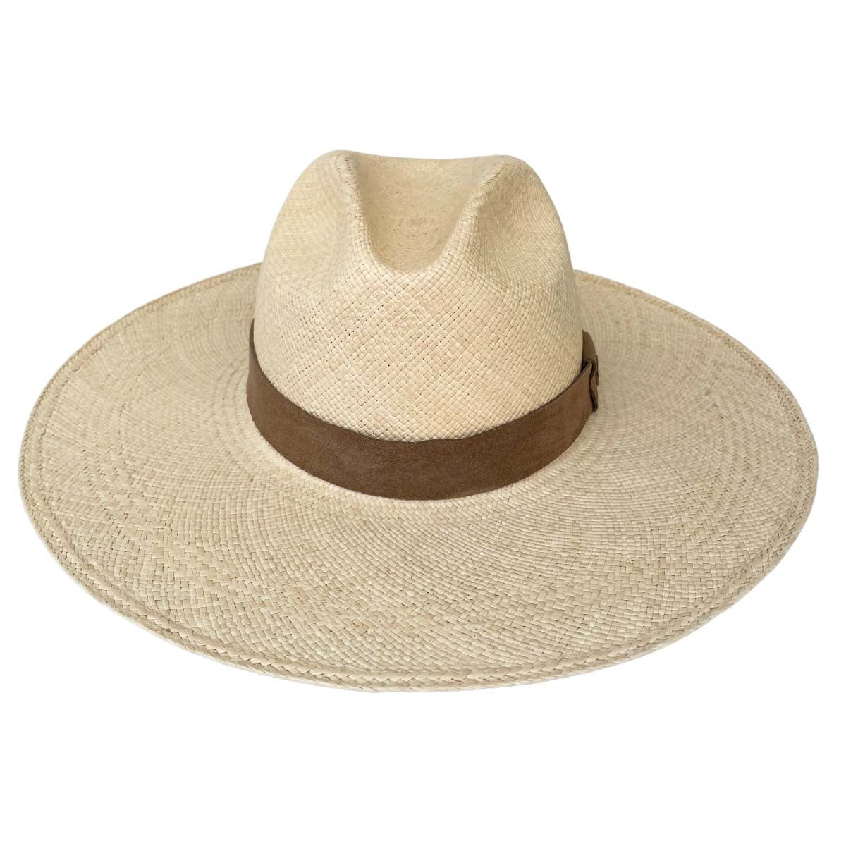 Discover the Women's Panama Hat in Natural color with Taupe Leather Band, a fashionable accessory that perfectly combines style and functionality.