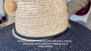 Discover our Natural & Black Bicolor Wide-Brim Wheat Straw Hat MEDINA, an exquisite fashion accessory designed for those seeking a sophisticated and unique appearance.