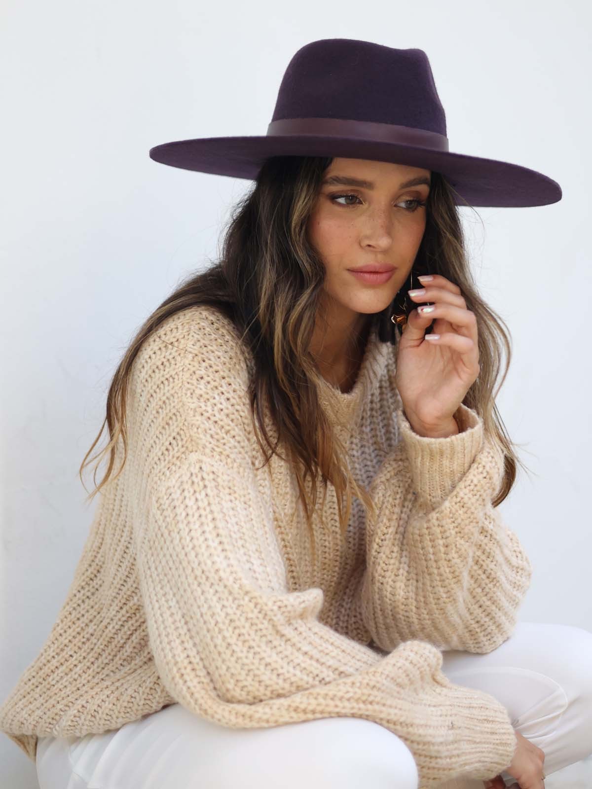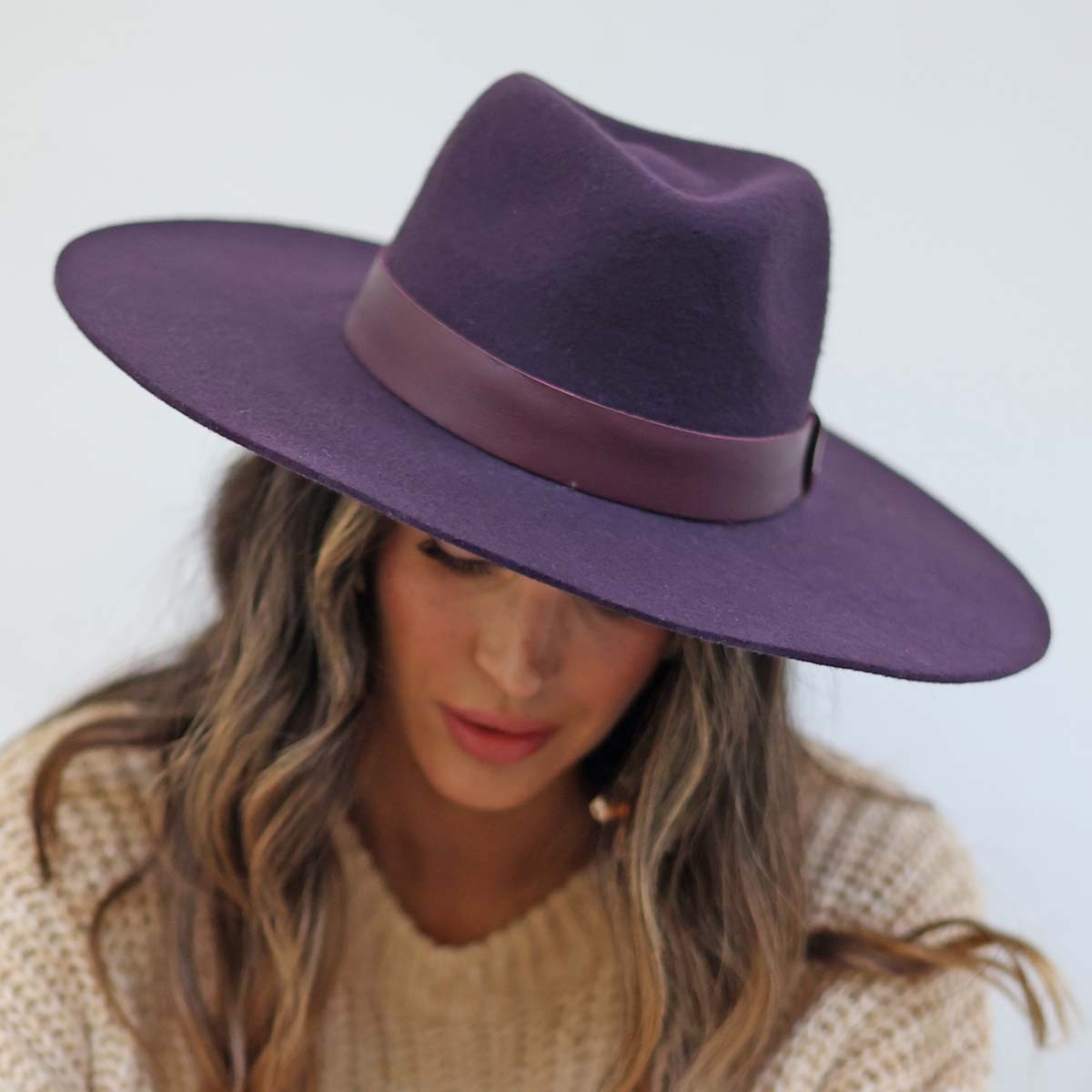 Fedora Hat Women's Wide Brim in Wool Felt Mauve - MIRO