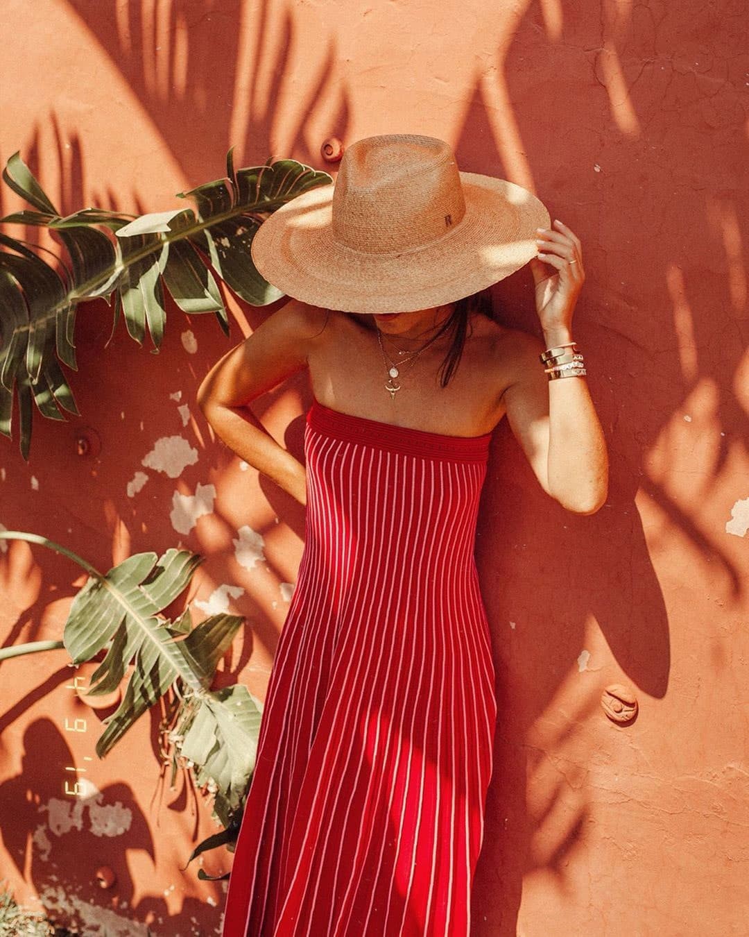 Accessorize your wedding guest outfit with a fedora straw hat and rest assured that your look will not go unnoticed! A summer wedding look that will take you right to the top of the best dressed ranking.