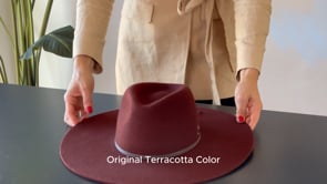 Fedora-Style Wide-Brimmed Hat in Unique Terracotta Color Crafted from 100% Wool Felt