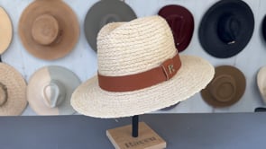 Este sombrero de mujer de rafia natural evoca una esencia puramente española. Suavemente tejido a mano en España, este sombrero rinde homenaje a las técnicas de artesanía tradicionales, garantizando una calidad superior y una belleza incomparable.