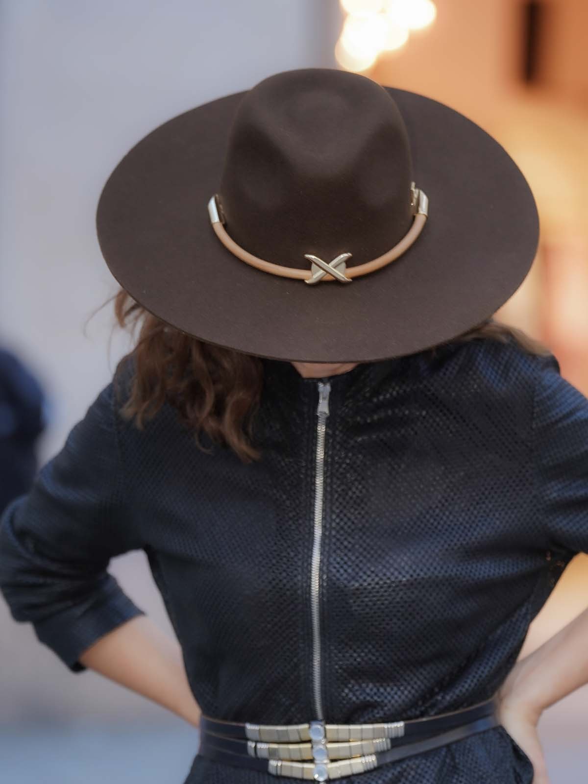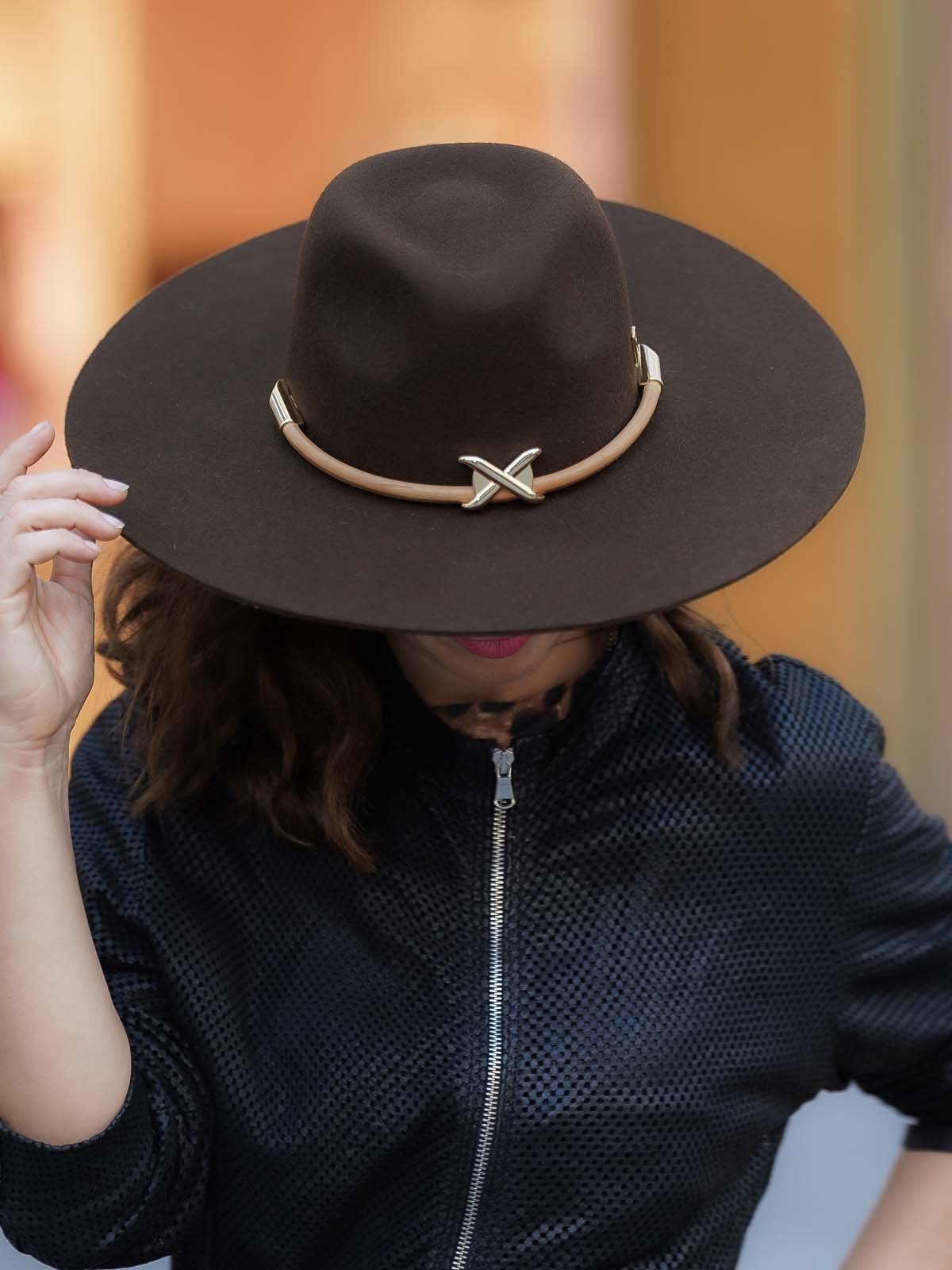 Cada elemento de nuestro sombrero ha sido diseñado para destacar. La decoración con cordón de piel y delicados adornos dorados añade un toque de lujo discreto, resaltando la exclusividad de la confección.