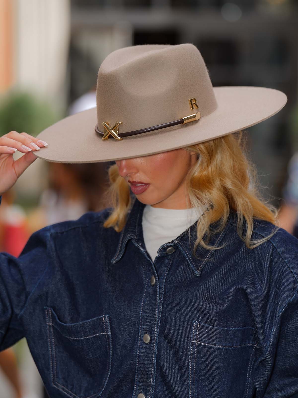 Su decoración en cordón de piel marrón, con apliques dorados y el distintivo pin R dorado, aporta un toque de lujo discreto que atrae miradas sin esfuerzo. Este Fedora no solo complementa cualquier atuendo, sino que lo eleva, dándote ese aire de sofisticación clásica que nunca pasa de moda.
